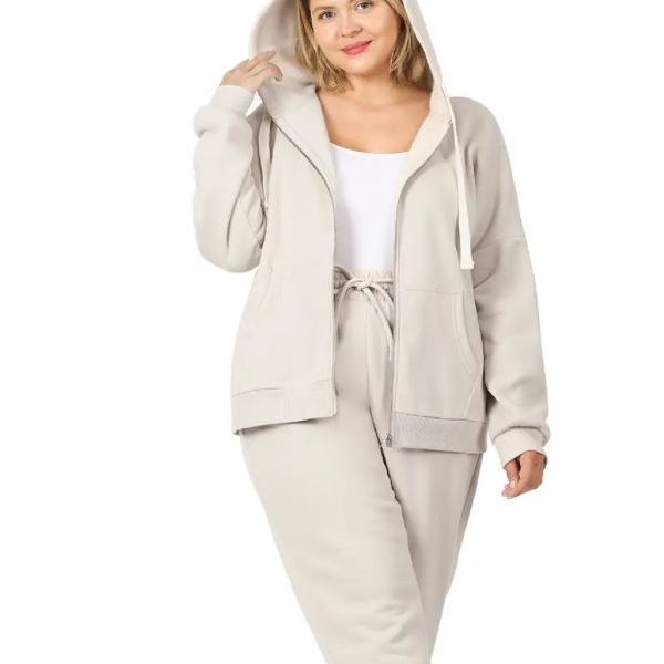 The Perfect Drama Plus Size Zipper Hoodie & Jogger Pants Set| Beige