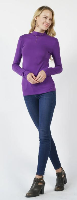 The Perfect Drama Purple Slim Fit Long Sleeve Stretch Cotton Top